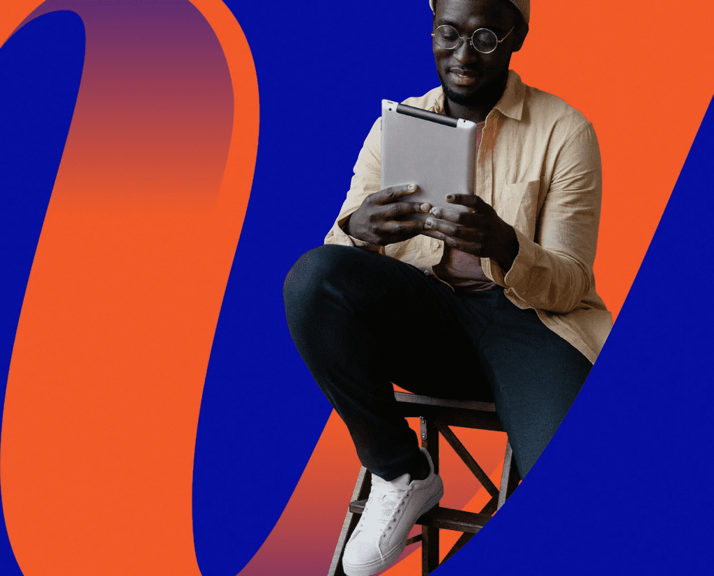 The gradient blue & orange blend creates a dynamic, premium feel — modern yet warm.